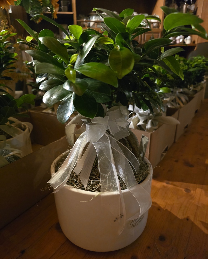Alla tua festa c’è una persona speciale alla quale vuoi dare una bomboniera speciale… ecco c’è il ficus ginseng, lavorato in una vaso di ceramica con decorazione ed ovviamente i nostri confettini