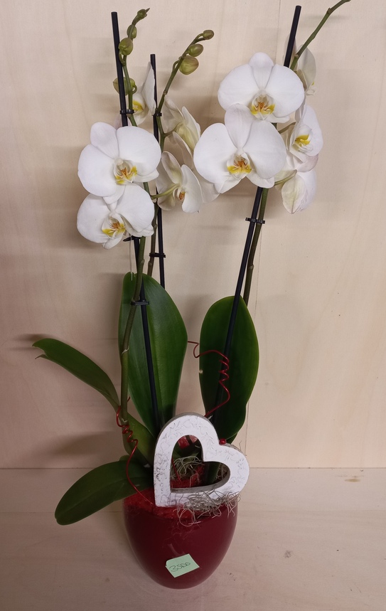 Orchidea lavorata su vaso in ceramica con decorazione di cuori