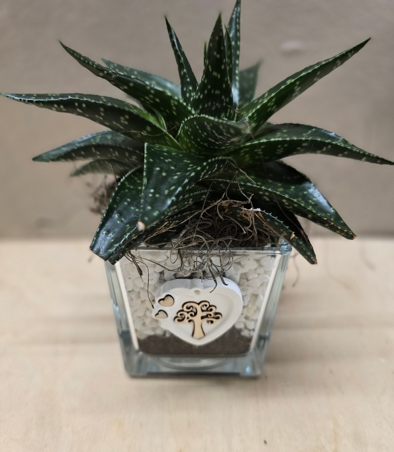 Pianta grassa in cubo in vetro. Per ogni tua ricorrenza potrai far conto delle nostre meravigliose piante grasse, lavorate con delle bellissime decorazioni da studiare assieme… ovviamente ci saranno anche i confettini